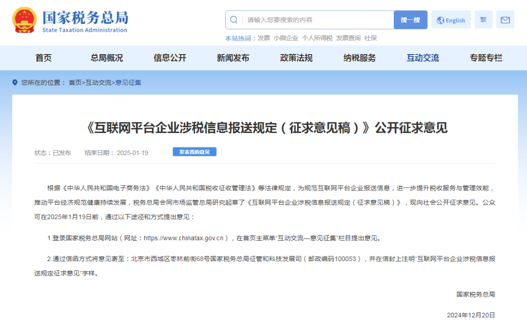 12月20日,税务总局发布了《互联网平台企业涉税信息报送规定(征求意见稿)》,有很多人对这篇意见稿有很多误区,今天3点带你说清电商税!01关于历史风险问题,是否倒查?针对前几天国家税务总局发布的信息,网络上有大批电商卖家讨论,会不会对以前也要追缴税款,征求意见稿上明确写了由于以前的存量信息不同步,除了试点的